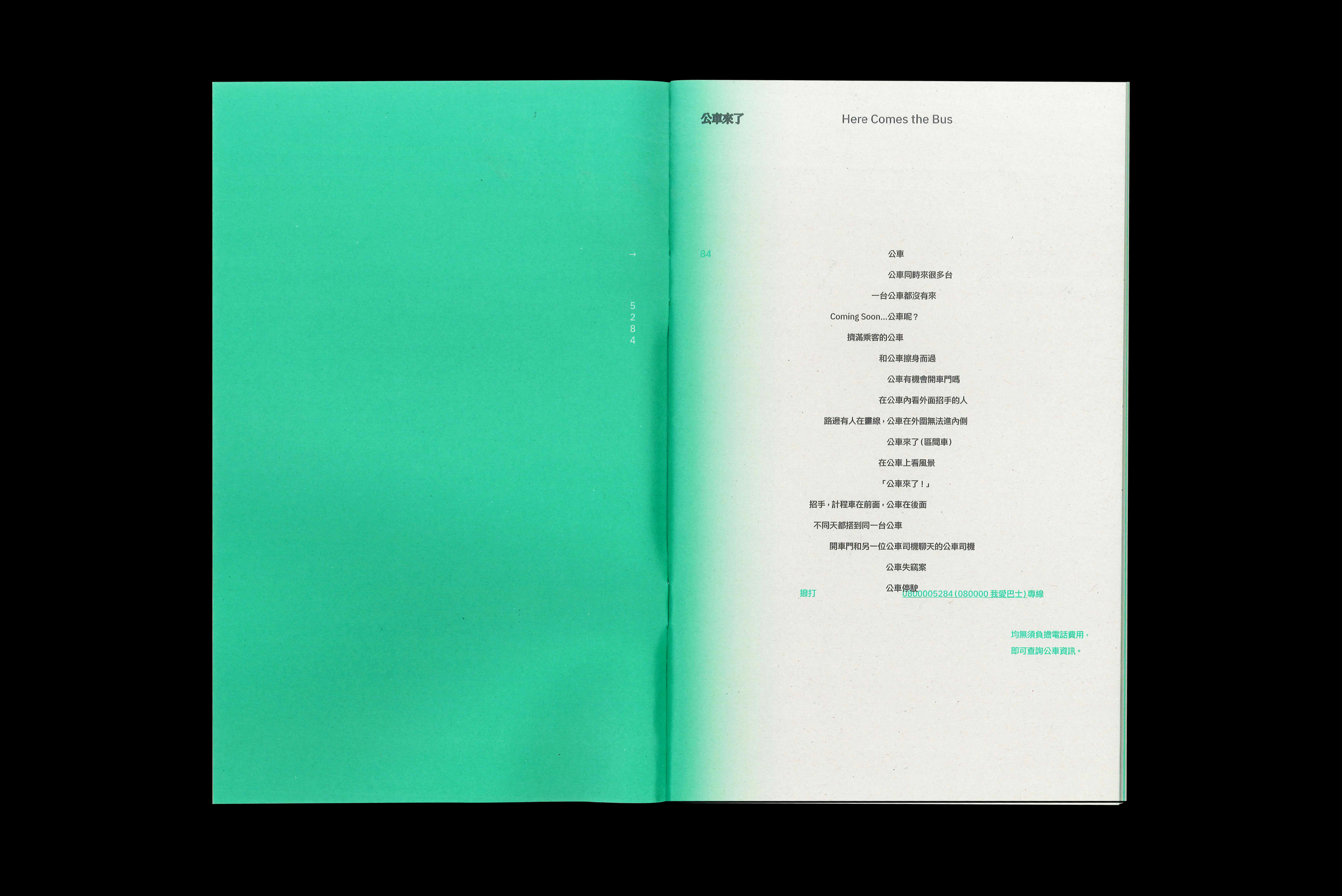 同時身為不太會搭公車的一員(前身),當時和好朋友有一種 「無形的搭公車比賽」,我們都不太會搭,公車話題是一種默契。平常有戰績交流,當然也有為彼此的進步(像是轉車或搭新號碼)給予肯定,對話輯本書也會收錄。